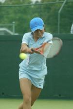 全国制覇を目指す宮崎商業が中心の女子、佐土原、日向学院のライバル対決に、実力急上昇中の宮崎大宮など混戦が予想される男子。パワスポ注目のテニス競技初日が県総合運動公園テニスコートで行われた。初日はシングルス1回戦から3回戦までが行われ、女子は10名出場した宮崎商業勢が全勝。順調に4回戦に進んだ。男子も日向学院荒木啓太が6-0で2連勝。佐土原日野竜人、藤崎祥太などシード勢は日向学院勢との試合に苦戦するも4回戦に進出した。また昨夏の九州ジュニア(14才以下)を制した宮崎大宮1年、石井智久も2連勝。大会は6月3日までの日程で行われる。