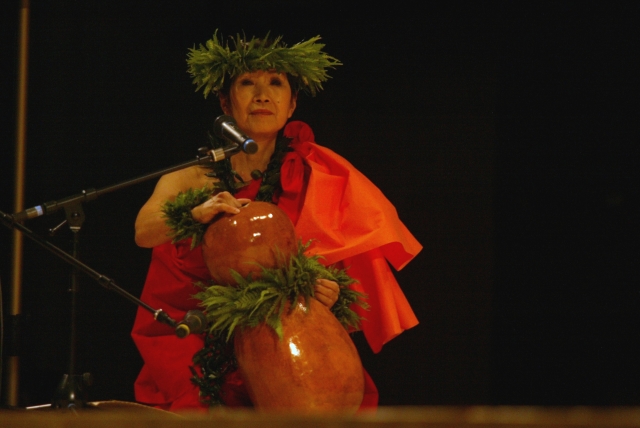 今年もまたクム・ナラニ・カナカオレ率いるハワイからのゲストが幻想的なカヒコを披露。静まり返る会場の中を美しい歌声が響き、会場はハワイの雰囲気が漂う南国のムードに。