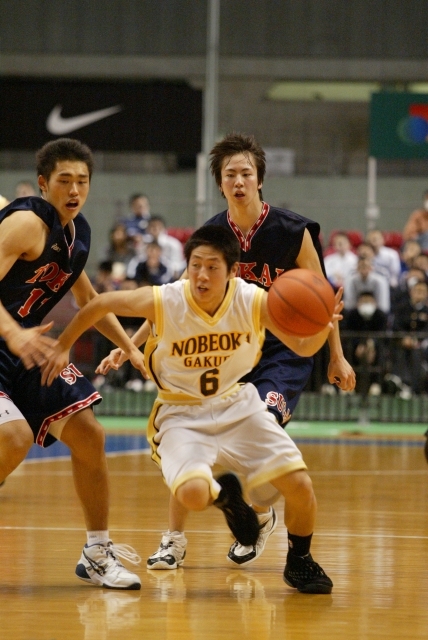 開始早々延学は和田のスティールからの得点などでリードを奪うが、すぐさま洛南に速攻で点数を返され逆転。これに対して延学も高さをいかしたオフェンスで対応するが速いプレスにボールを奪われ得点が伸びない。1Pは8-17で終了。