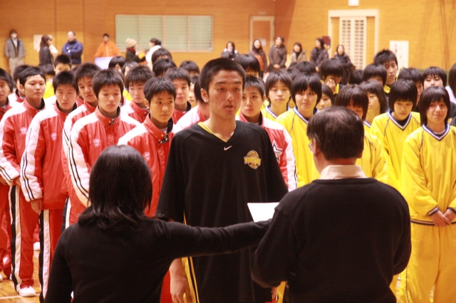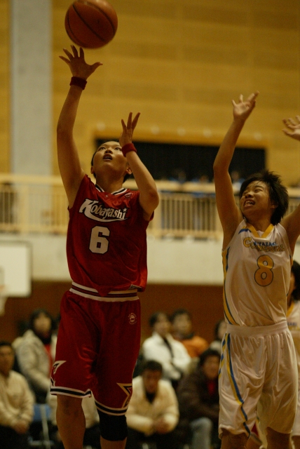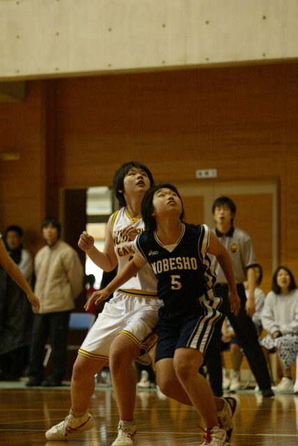 序盤はゆっくりと相手の動きを見ながらの延岡学園。小林も動きが良く接戦を演じたが、前半終了間際、いつの間にか点差は開き、後半は延学が得点を重ね勝利した。延学のディフェンスがしっかりしている為小林の得点が入るときはオフェンスが上手く機能したときだけで試合の中では目立つようなプレーになる。逆に延学はボールをしっかり運び確実にシュートを決める様なプレーで点数を重ねる。試合を見ていると好勝負に見えるが、気がつけば点差は開き延学の強さが目立つ結果になる。他には昨年敗戦のきっかけとなった相手の3ポイントに対しての対応では「簡単にはシュートをうたせない。」ひとつひとつのプレーに対する意識の高さが見られた。